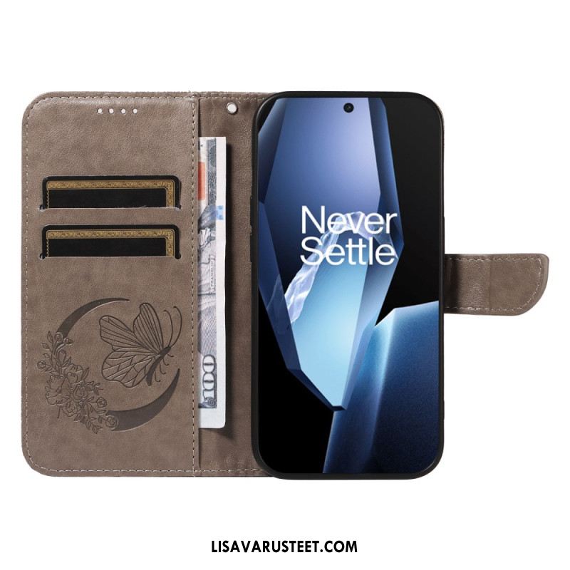 Kotelot Oneplus 13r Perhoskuvioinen Hihnalompakko Suojakuori