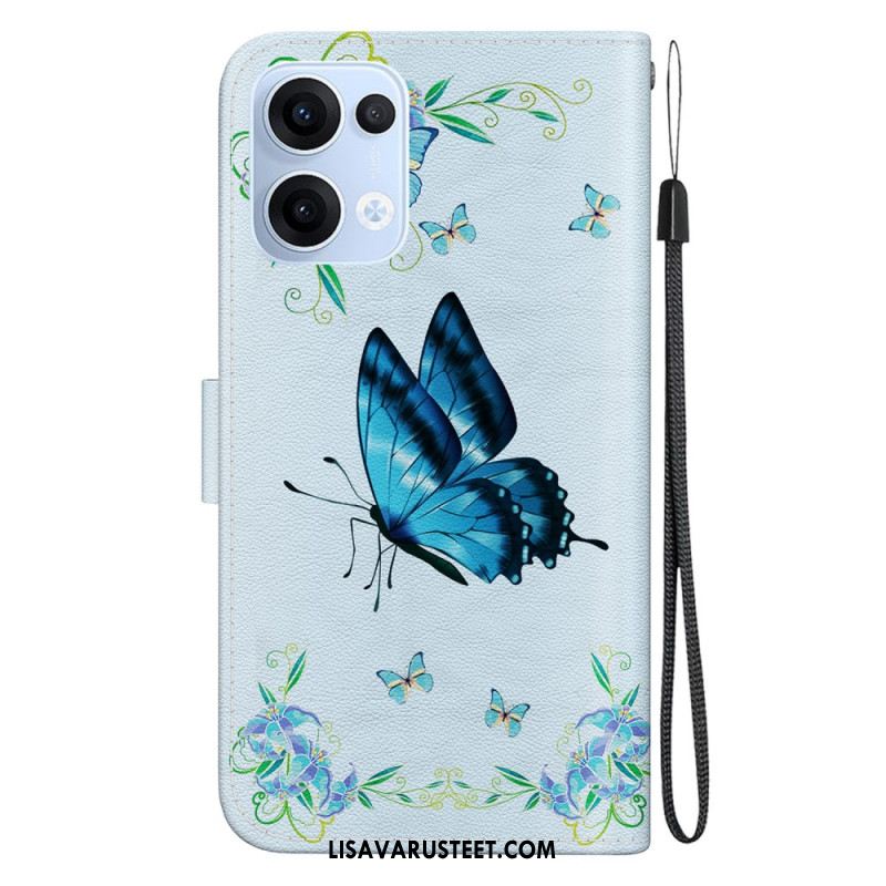 Kotelot Oppo Reno 13 5g Perhonen Ja Siniset Kukat Suojakuori