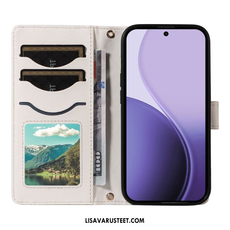 Kotelot Oppo Reno 14 5g Yksivärinen Nahkakuvio Hihnalla Suojakuori