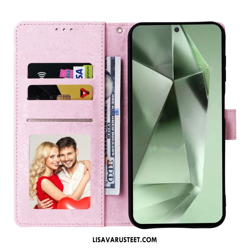Kotelot Samsung Galaxy S25 Fe Kukkaiskuvio Ja Hihna