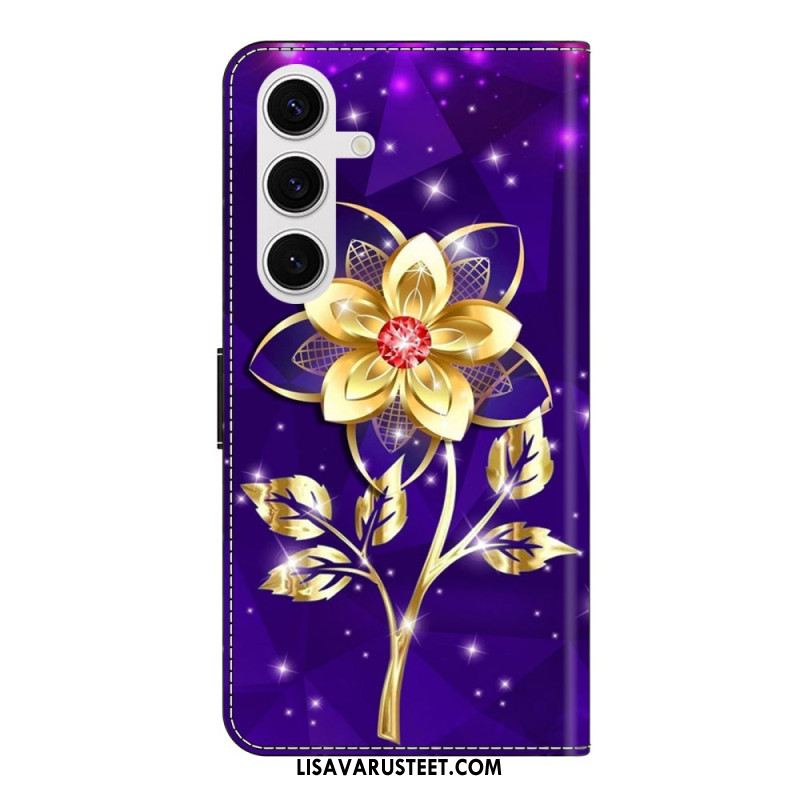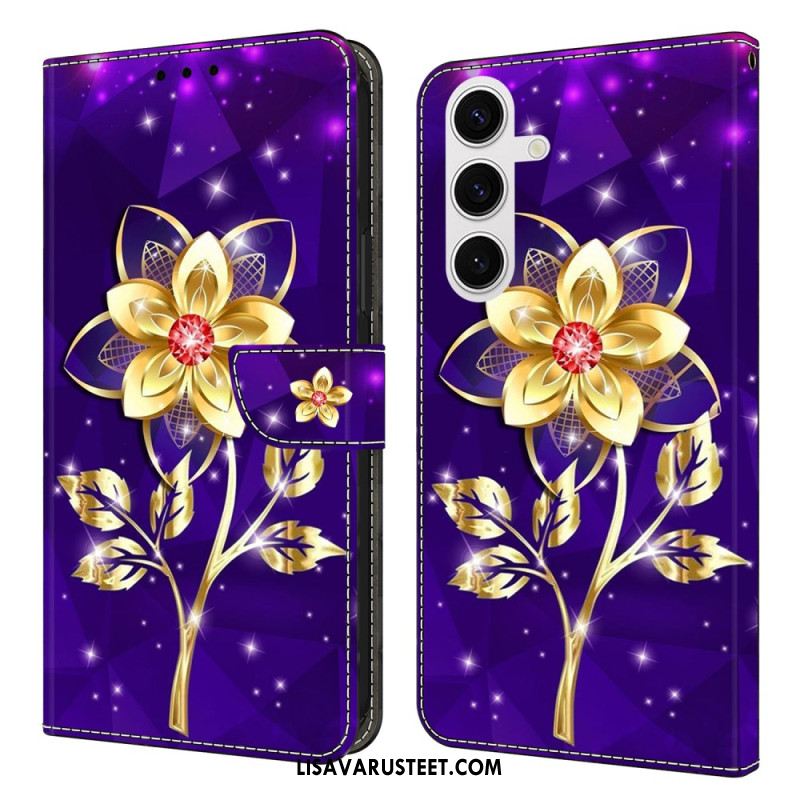 Kotelot Samsung Galaxy S26 Plus Puhelinkuoret Kultaiset Kukat Violetilla Taustalla