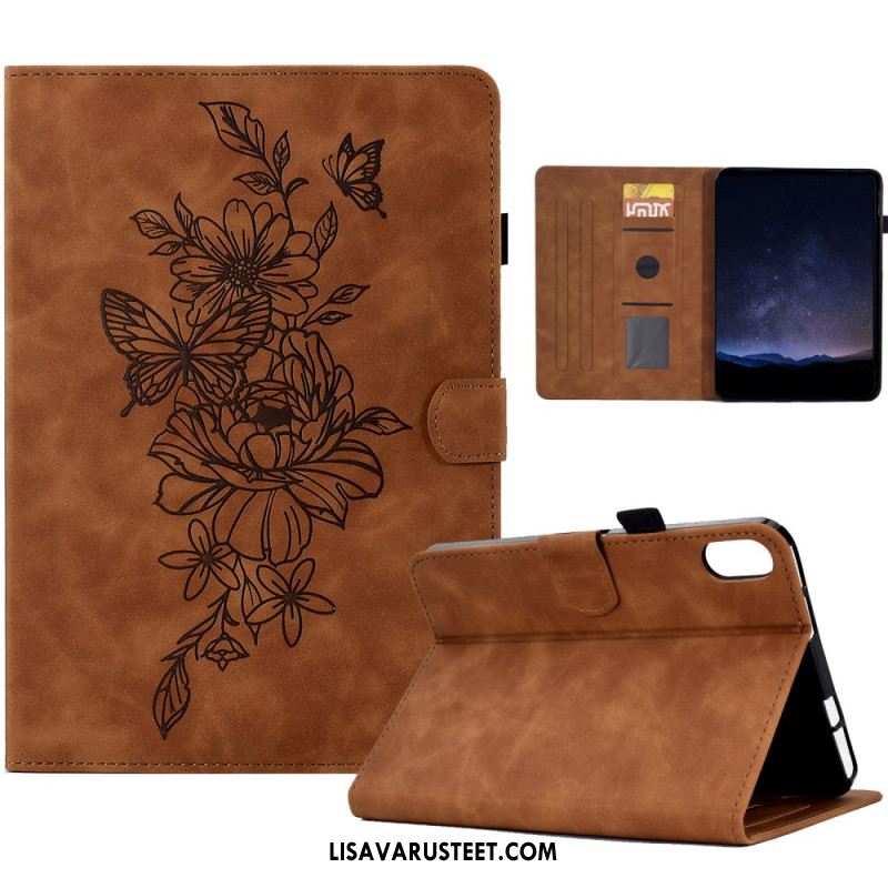 Kotelot Samsung Galaxy Tab S11 Mokkanahkainen Kukka- Ja Perhoskuvio