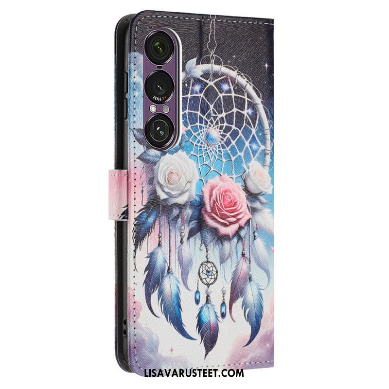 Nahkakotelo Sony Xperia 1 Vii Violetit Ruusut