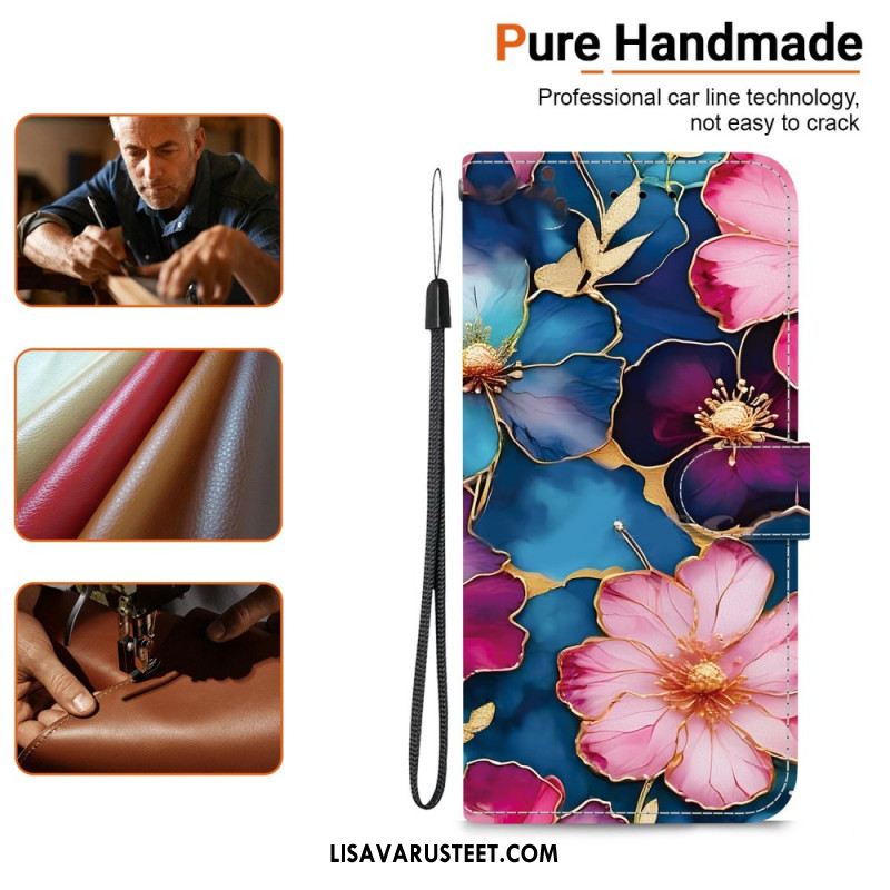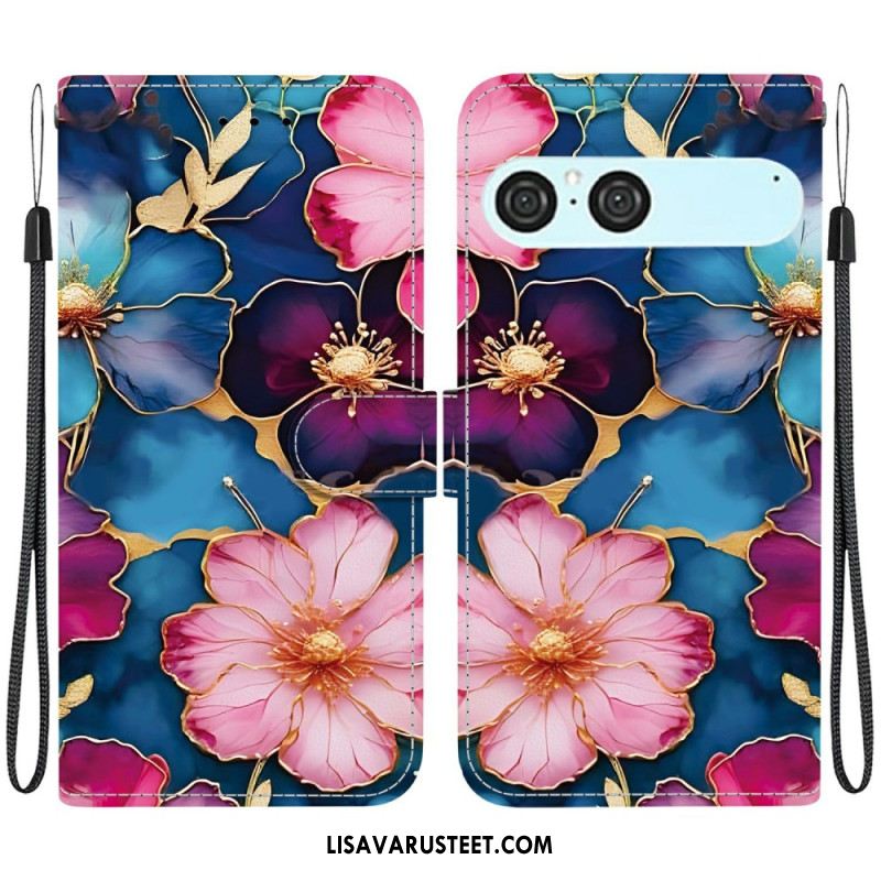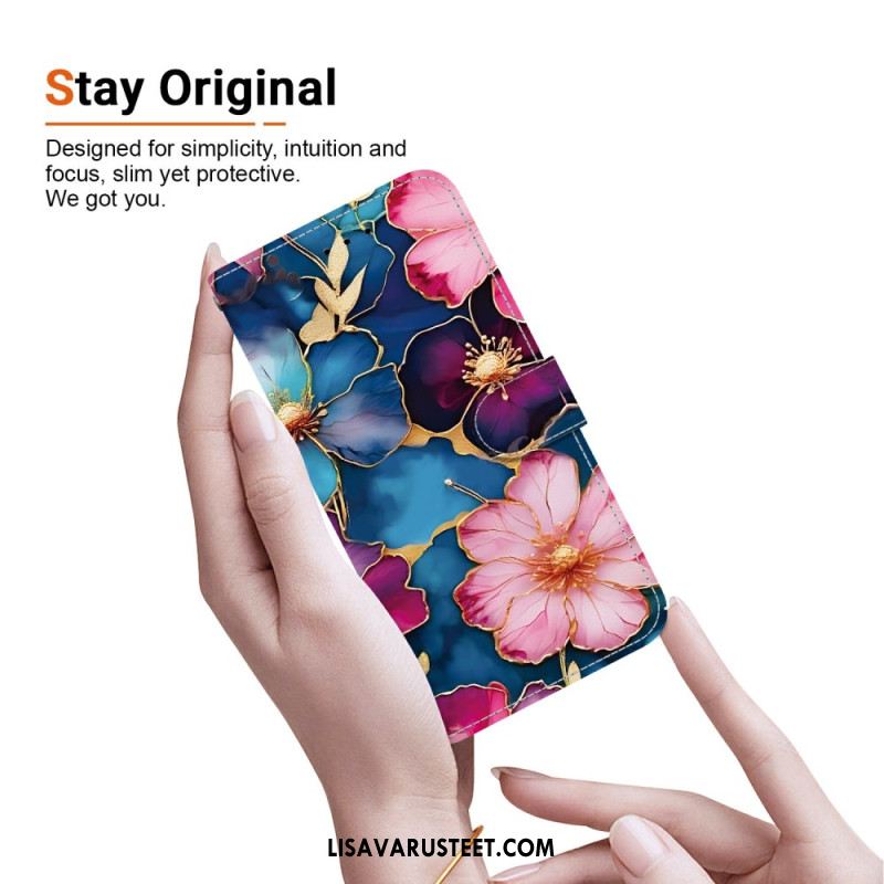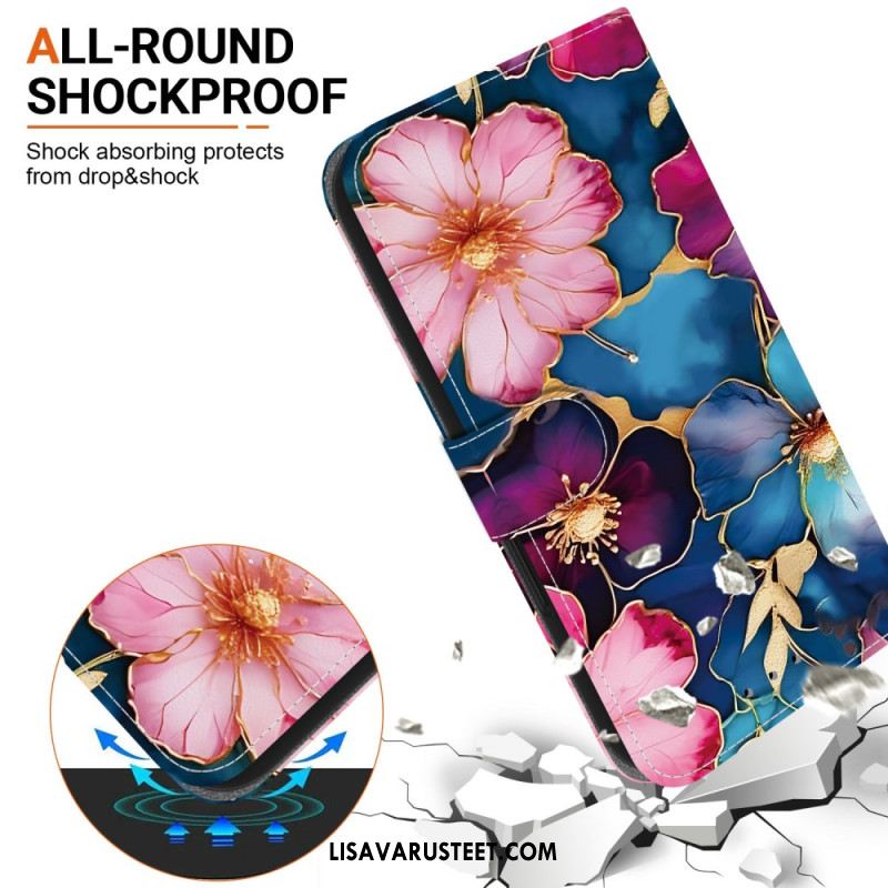 Kotelot Sony Xperia 10 Vii Sininen Ja Kultainen Kukkakuvio