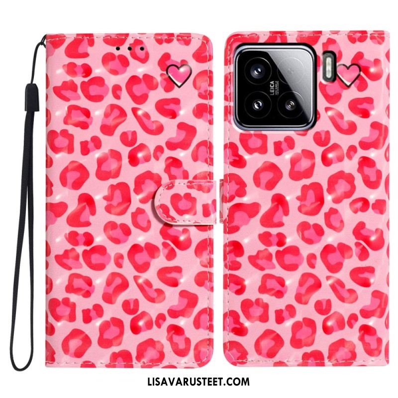 Kotelot Xiaomi 15 3d-vaaleanpunainen Leopardikuvio