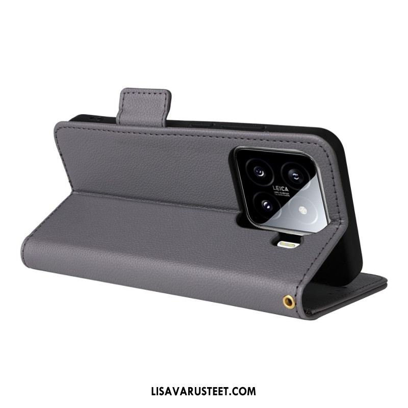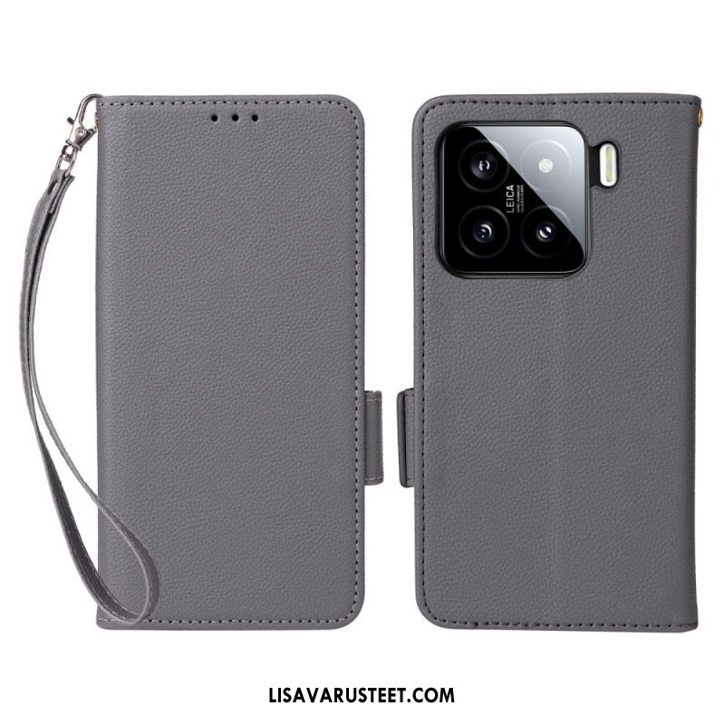 Kotelot Xiaomi 15 Pro Litsikuvioinen Tekonahka Hihnalla