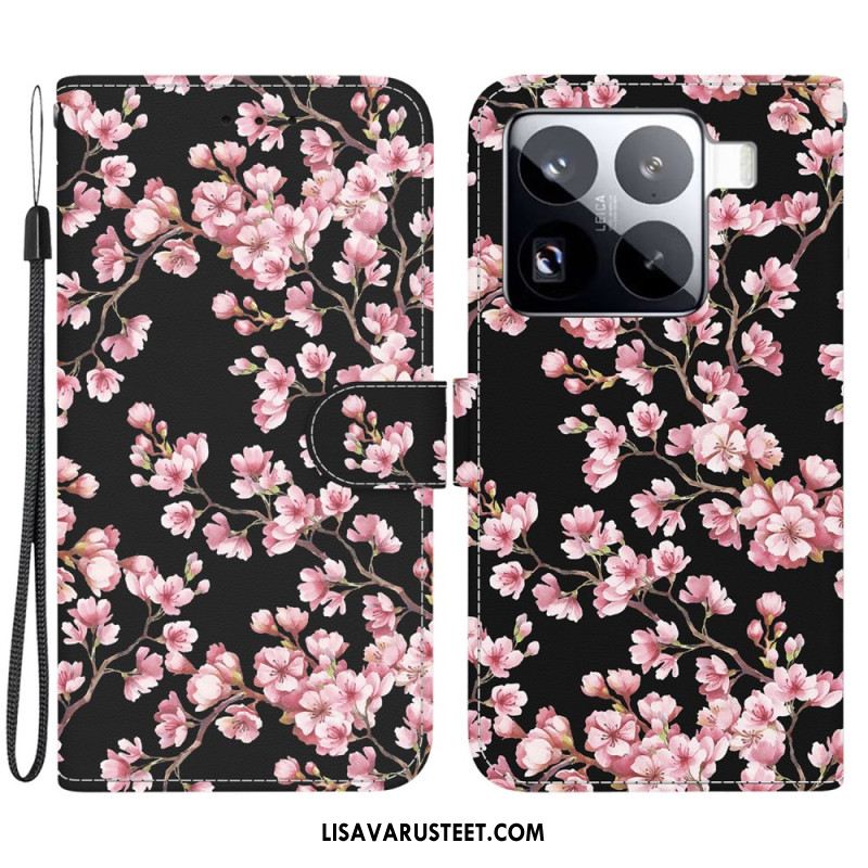 Kotelot Xiaomi 15 Pro Valkoiset Kukat -hihna