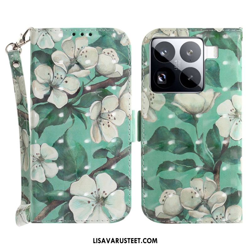 Kotelot Xiaomi 15 Pro Valkoiset Kukat -hihna