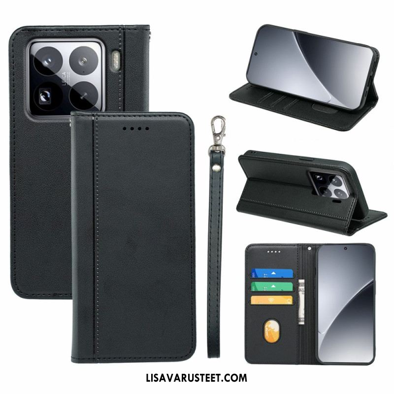 Nahkakotelo Xiaomi 15 Litsi-keinonahka Hihnalla
