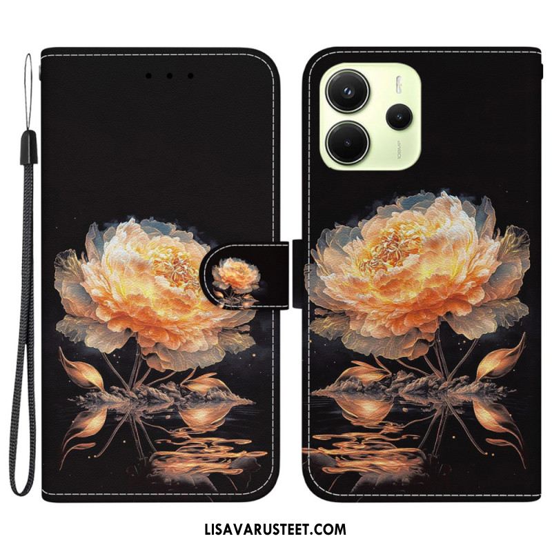 Kotelot Xiaomi Redmi Note 14 4g Valkoisia Kukkia Hihnalla