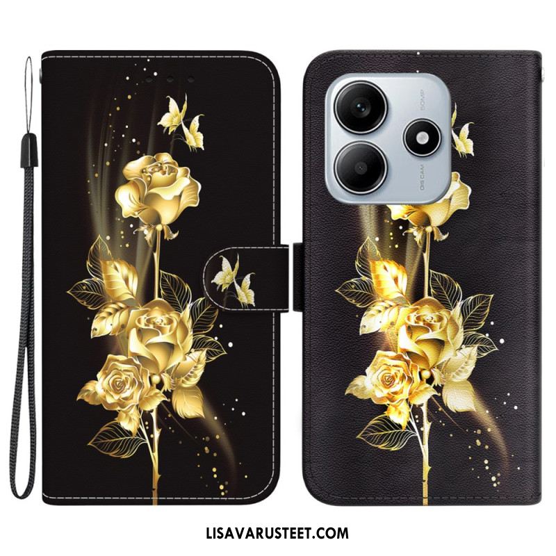 Kotelot Xiaomi Redmi Note 14 5g Puhelinkuoret Kultaiset Perhoset Ja Ruusu