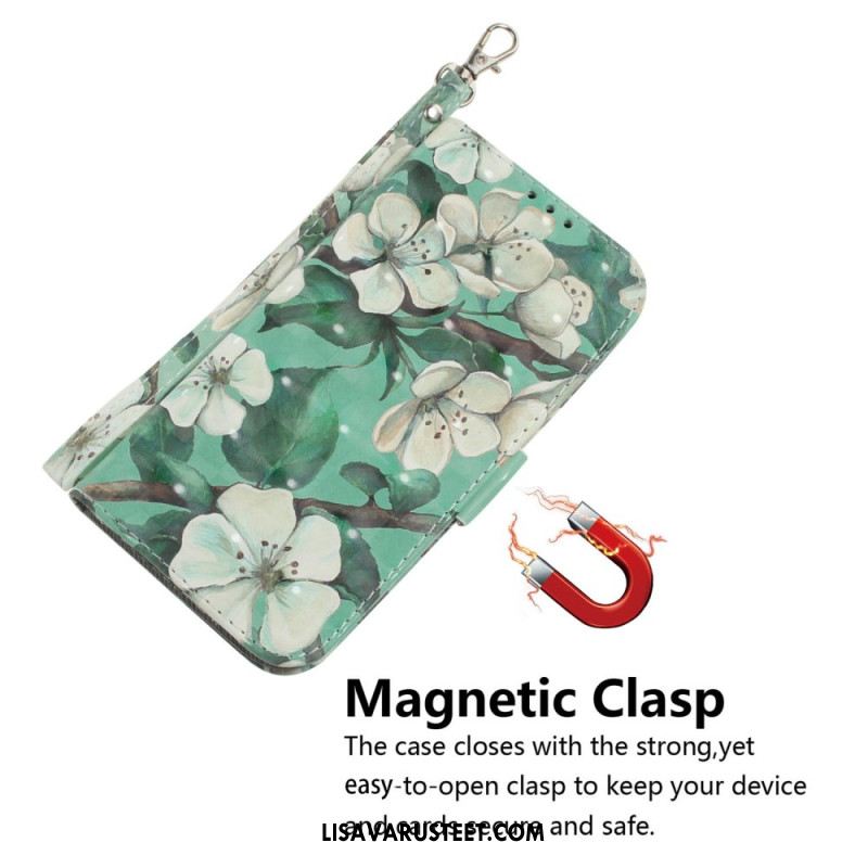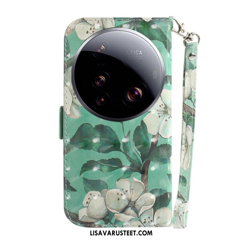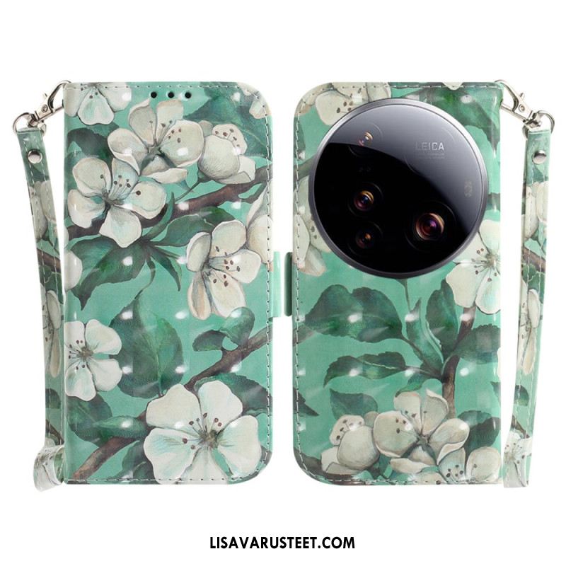 Kuoret Xiaomi 15 Ultra Valkoisia Kukkia Ja Nauha