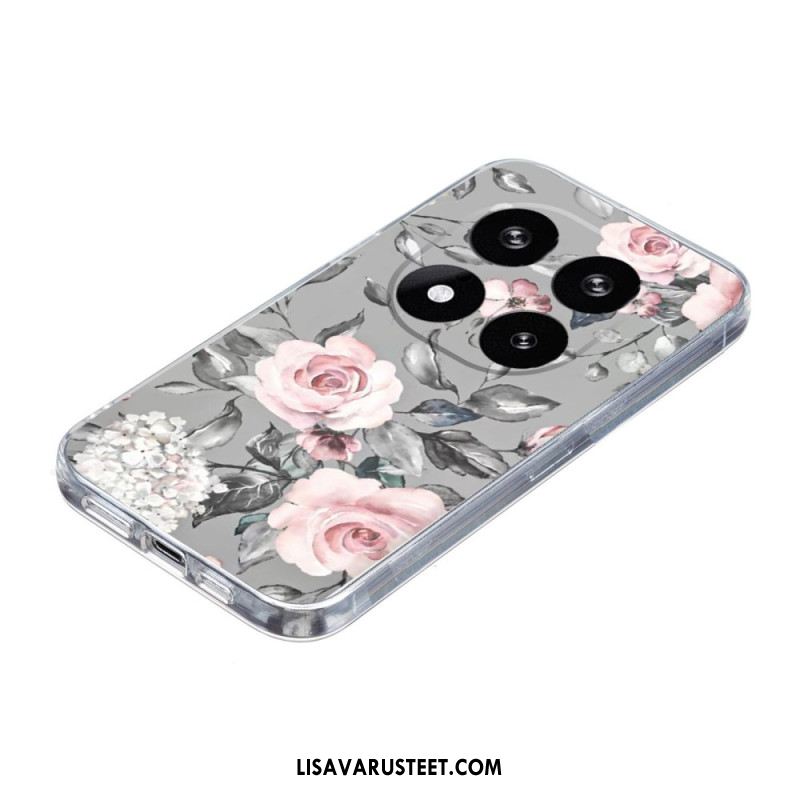 Kuori Xiaomi Redmi Note 14 Pro 5g Kukkakuvio Harmaalla Taustalla