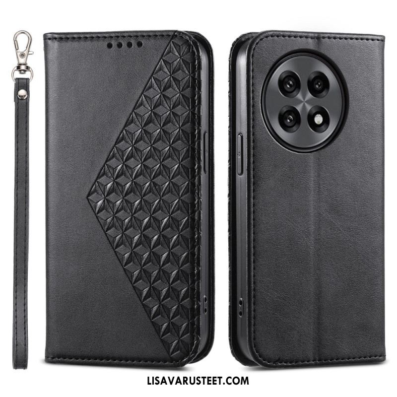 Nahkakotelo Oneplus 13r Timanttikuvioinen Ranneke