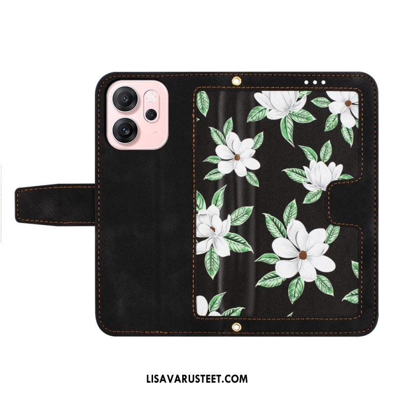 Nahkakotelo Oppo Reno 14 5g Kukkakuvio Hihnalla