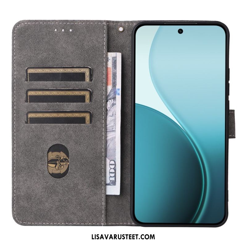 Nahkakotelo Oppo Reno 14 5g Kukkakuvio Hihnalla