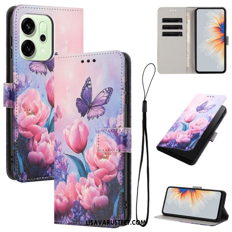 Nahkakotelo Oppo Reno 14f 5g Kukat