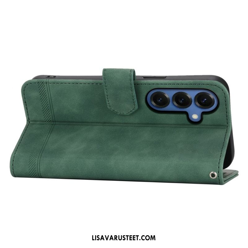 Nahkakotelo Samsung Galaxy S26 Kukallinen Mokkanahkakuvio Hihnoilla