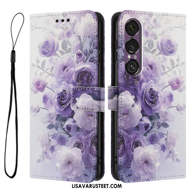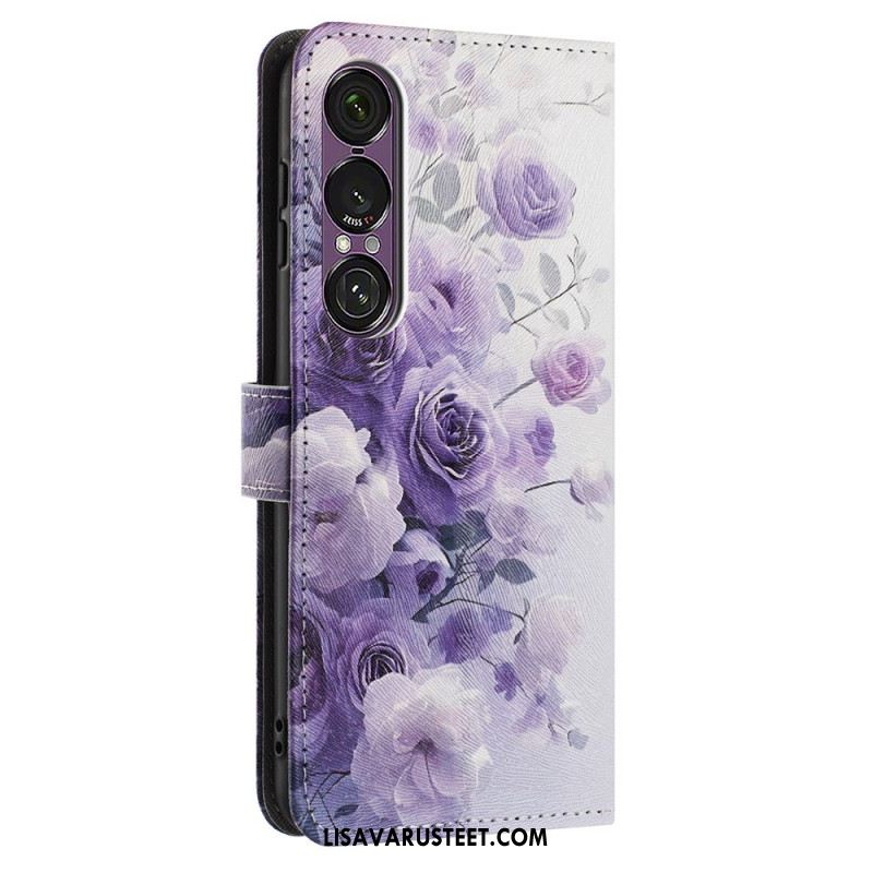 Nahkakotelo Sony Xperia 1 Vii Violetit Ruusut