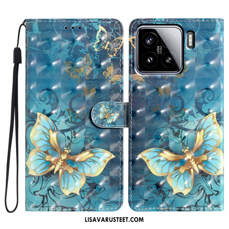 Nahkakotelo Xiaomi 15 3d-perhosia