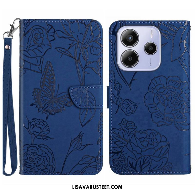 Nahkakotelo Xiaomi Redmi Note 14 4g Perhoskuvio Hihnalla