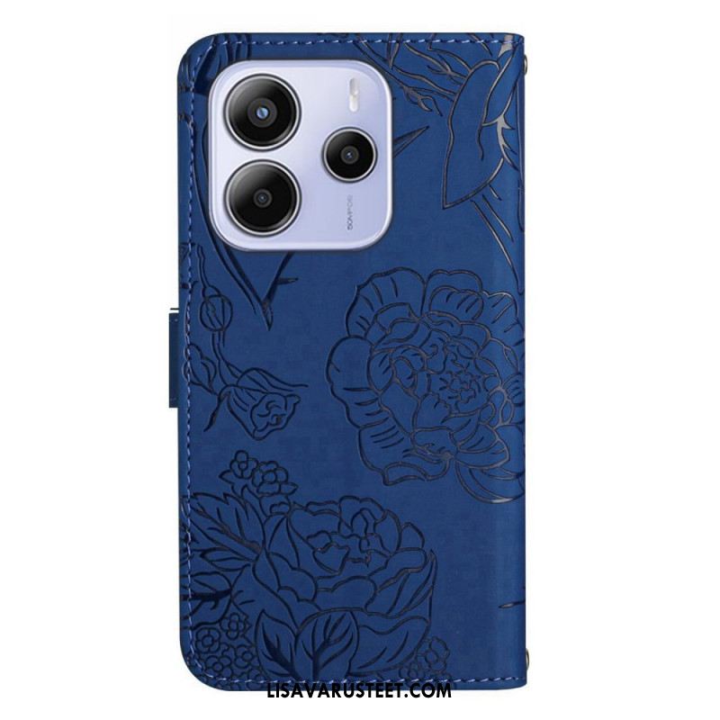 Nahkakotelo Xiaomi Redmi Note 14 4g Kukkakuvio Ja Hihnat