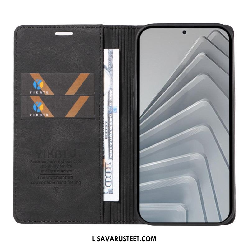 Nahkakotelo Xiaomi Redmi Note 14 4g Ykatu Ruskea Mokkanahkakuvio Suojakuori