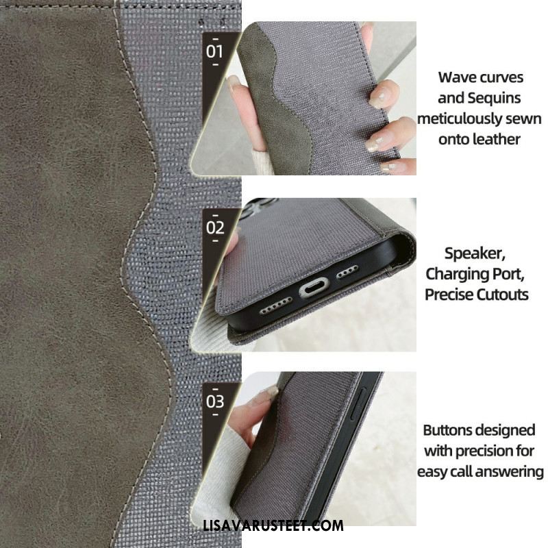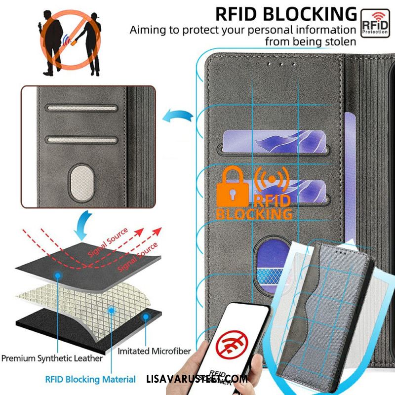 Nahkakotelo Xiaomi Redmi Note 14 5g Rfid-suojauksella Ja Aaltoilevalla Muotoilulla