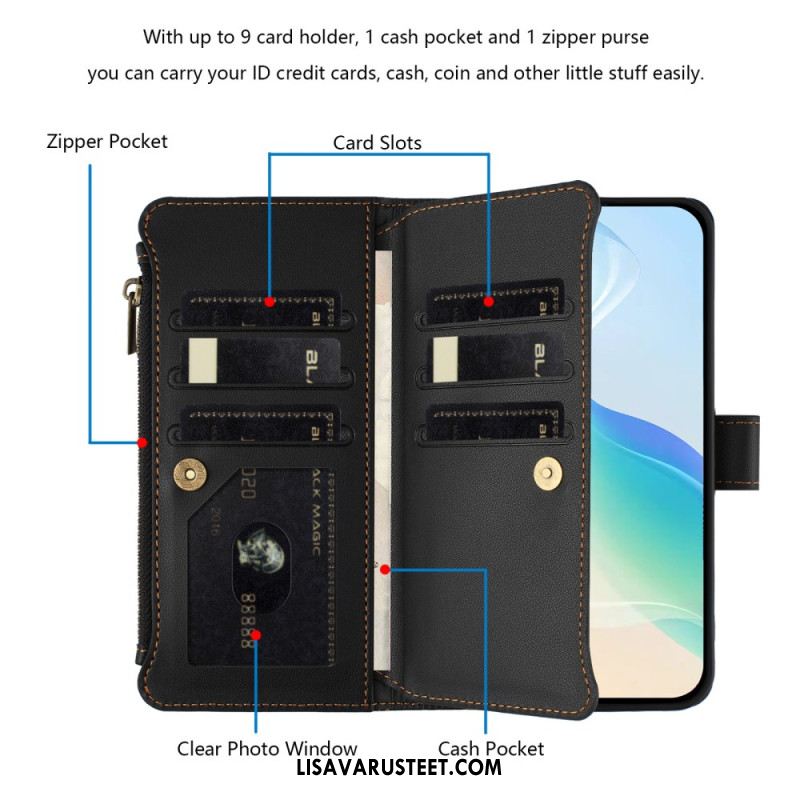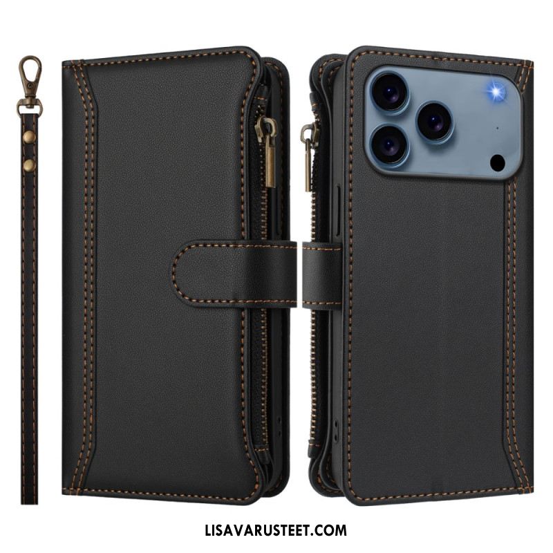Nahkakotelo iPhone 17 Pro 9 Kortin Lokeron Lompakko Ja Nauha